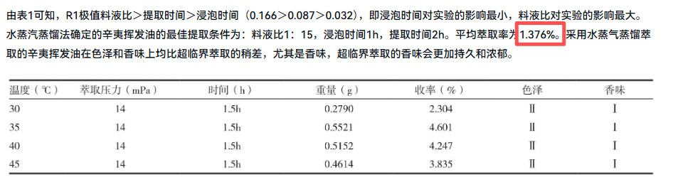 提取技术的迭代也正在重塑价格结构:传统蒸馏法虽成本相对较低,但精油得率仅为1-3%;超临界CO₂萃取技术能将萃油率提升,例如水蒸馏法萃取辛夷精油的平均萃油率为1.376%,CO₂萃取的平均萃油率为5.148%。